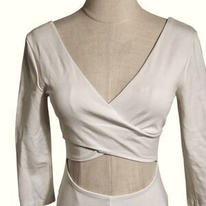 Bebe White Cream Cur Out Stretch Dress 3/4 Sleeve