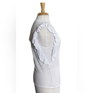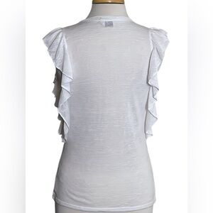 Bebe White Ruffle Flutter Short Sleeve Top | Feminine Coquette Style | Size M