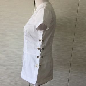 Bebe White Short Sleeve Blouse with Tie-up Detail