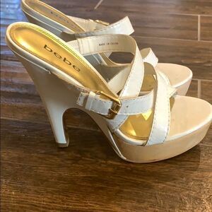 👠 Bebe White Slip-On Heels - 5” Heel - Great Used Condition