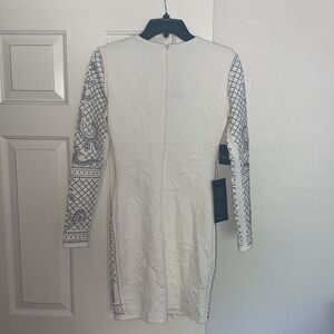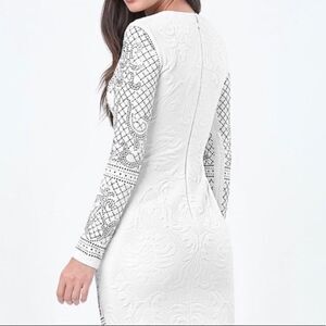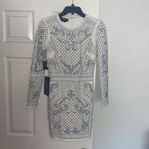 Bebe embellished studded dress, quilted style with zipper closure on the back, brand new with tags. Size small, excellent quality, a great piece for any wardrobe. Color: white with silver embellishments.