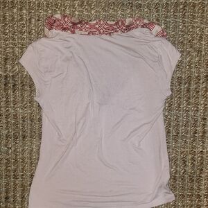 Bebe White and Pink Ruffled Fitted T-Shirt