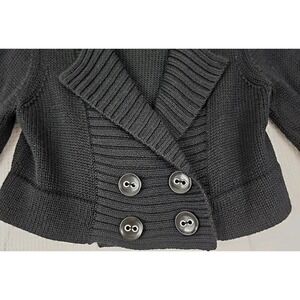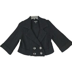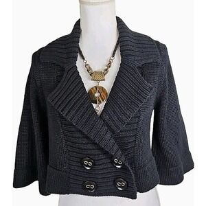 Bebe ~Woman Size S~ Black Wool Blend Crop, Double Brested Sweater 3/4 Sleeves.