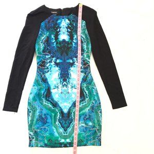 Bebe Women Blue Black Color block Long Sleeve Body cone Dress size XS Stretch AS