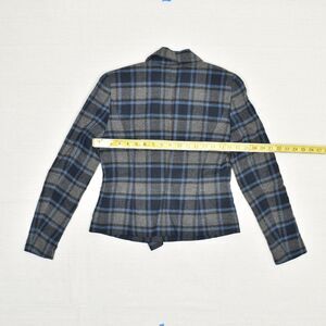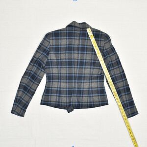 Bebe Women Double Breasted Blazer Plaid Polyester Gray Size 4 Acrylic Blend