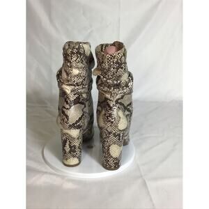 Bebe Women Vegan Snake Skin Mid Calf Boots Sz. 7 Brown 3.5” heel Edgy Y2K