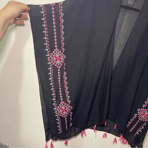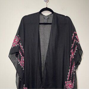 Bebe Women’s Black Embroidered Kimono Cardigan Tassel Trim One Size Boho Chic