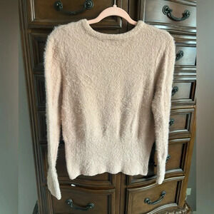 Bebe Women’s Blush Pink Fuzzy Rhinestone Logo Sweater Pullover Size XL