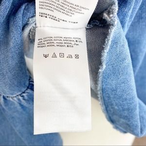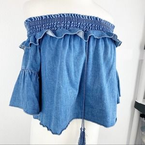 Bebe Women's Denim Off Shoulder Ruffle Boho Top XS