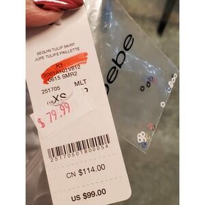 Bebe Women's Multicolor 100% Polyester Back Zip Sequin Tulip Mini Skirt X-Small.