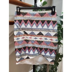 Bebe Women's Multicolor 100% Polyester Back Zip Sequin Tulip Mini Skirt X-Small