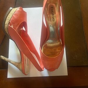 Chic coral slingback heels by Bebe. Elevate your look with these stylish shoes.