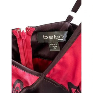 Bebe Womens Satin Printed V-Neck Sleeveless Slip Dress Pink Black Small