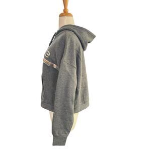 Bebe Women's Sequin Logo Hoodie Charcoal BP2350B Large NWT Thumbholes Kangaroo P