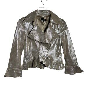 Bebe Women’s Size Small Vintage Y2K Light Gold Leather Peplum Jacket Ruffle Hem