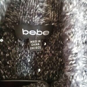 Bebe Womens Sweater Grey OS Turtleneck Cape Poncho OS