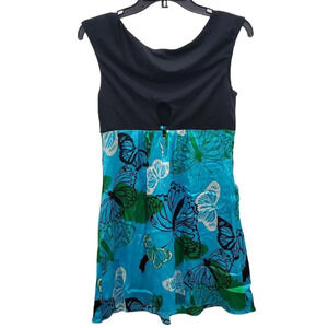 Black top w/ blue butterfly print bottom
