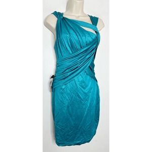 Bebe Womens Wrap And TWIST Glam Teal Shine Strappy DRESS SIZE Medium New