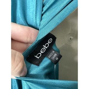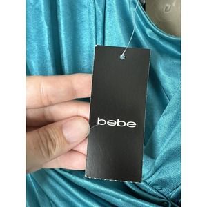 Bebe Womens Wrap And TWIST Glam Teal Shine Strappy DRESS SIZE Medium New.