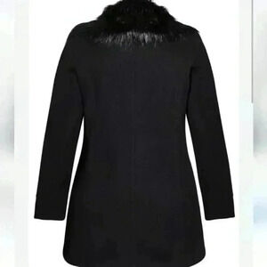 Bebe Wool Black Faux Fur Trim Midi Coat - like new condition