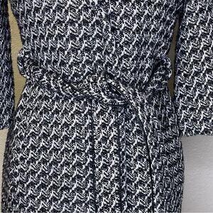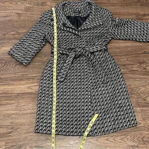 Bebe Wool Blend Belted Coat Snap Buttons Black White Metallic Silver Threads Sm