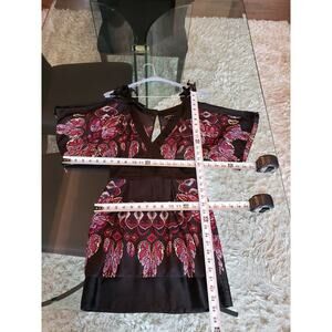 Bebe Wrap Dress Womens XS Multi Silk Paisley Empire Waist Cold Shoulder Sleeve