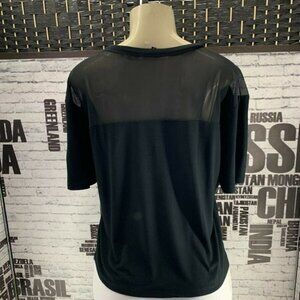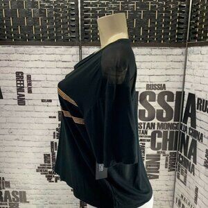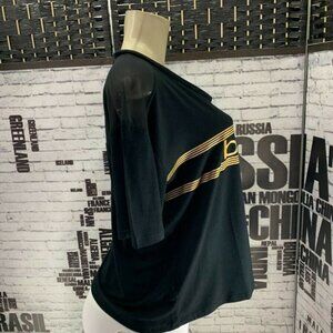 ITEM: Bebe XL Black Logo Gold Mesh Trim Short Sleeve Crop Tee