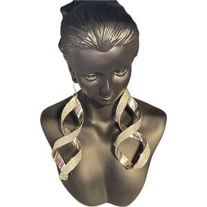 Bebe XL Sparkle & Polished Silver Twisted Linear Dangle French Wire Earrings