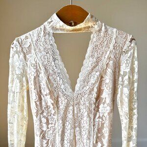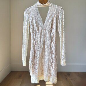 💫 Bebe Lace Mock Neck Mini Dress – Size XS – NWOT