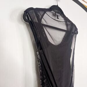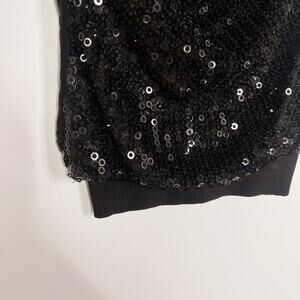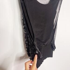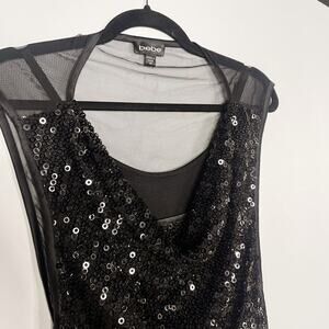 Bebe XSmall XS Black Sequin Layered Sheer Top Cowl Neck Built In Tank Camisole