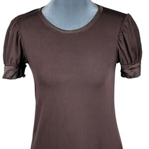 Bebe Y2K Dress Sz Small Brown Silk Trim Puff Sleeve Goblincore Fairy Vintage USA
