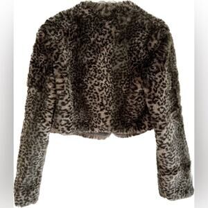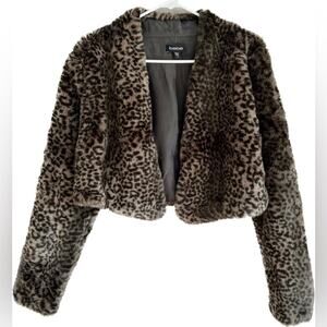 Bebe Y2K Faux Fur Leopard Print Cropped Jacket – Medium
