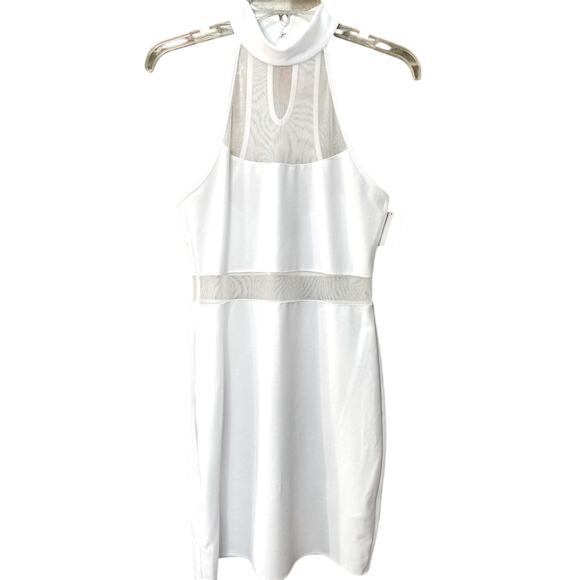 Bebe Y2K Mesh Bodycon Halter Mini Dress – White (Small) NEW