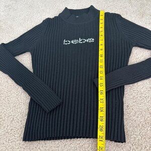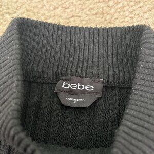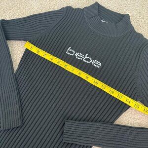 Bebe Y2K Ribbed Knit Sweater Women Size M Black Mock Neck Beaded Logo 90s