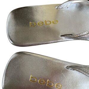 Bebe Y2K Vintage Heiress Silver Metallic Rhinestone Thong Sandals Women’s Size 9