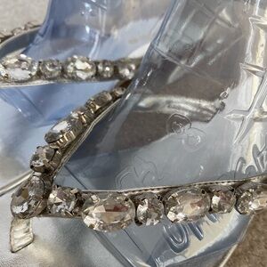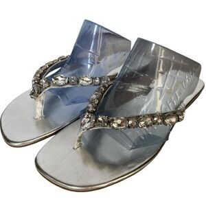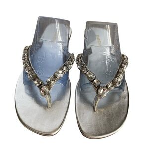 Bebe Y2K Vintage Heiress Silver Metallic Rhinestone Thong Sandals. Women’s Size 9.