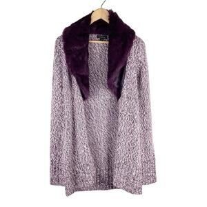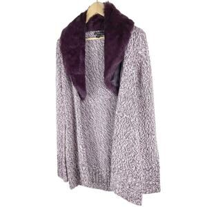 Bebe Y2K Women's Purple Speckled Open Front Duster Cardigan w Fur Collar SM