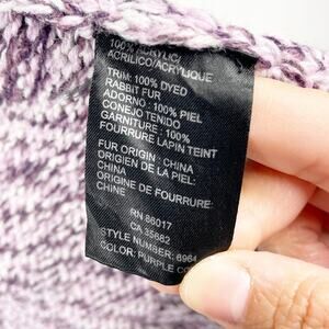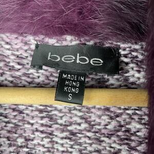 Bebe Y2K Women's Plum Purple Speckled Open Front Duster Cardigan w Fur Collar Size Small. In great preowned condition with no stains or tears. Rabbit fur trim. Measures about 30 inches from shoulder to hem and about 16 inches flat across the chest but is worn open so there is more room. Quintessential 2000s 00s style. Packaged with care.
