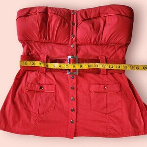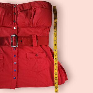 Bebe Y2K mcbling red strapless belted babydoll tube top size L button down
