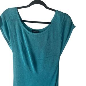 Bebe Y2k Women's Size XS Metallic Teal Sheer Knit Mini Going Out Dress