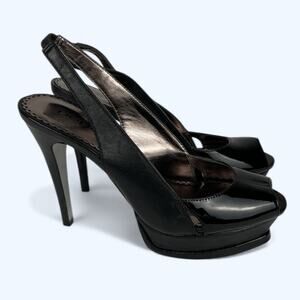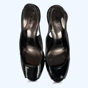 Bebe Zahara Black Patent Leather Stiletto Platform Slingback Peep-toe Heels 8M