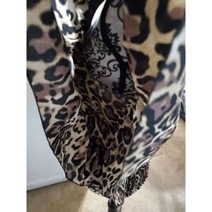 If you love animal print with interesting architecture this one is for you! Bebe animal print ladies blouse with fluttery wing-like sides and black beading around neckline. Ruched gathering at bottom of blouse. Wear this to impress at work, out with friends or on a date. Snag this up fast! Non-smoking household.