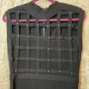 Beautiful bandage Bebe dress, only used once and dry cleaned. Cage top with metal studs in the front part with zipper on the back of the dress. 🌸Offers Welcome 📦 Bundle & Save Smoke-Free home