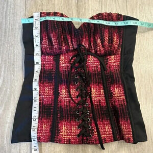 Bebe black and red corset top. Has boning size small. Side zipper. Has a small tear on the side by the zipper.