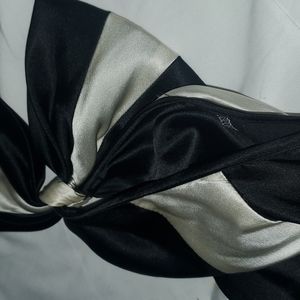 Cute peachy pink bebe blouse. Black and white 1 strap around shoulder. Not adjustable. 96% silk 4% spandex. Never did wear.