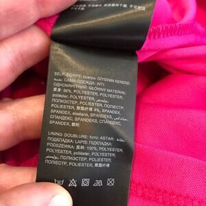 Bebe bright pink halter neck open back sleeveless ruffle hem dress Large NWT