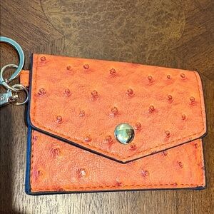Bebe card case keychain mini bag bag charm vegan ostrich pattern orange NWOT