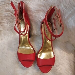Bebe coral platform ankle strap Mary Jane 5" heels Sz 10 matching polish