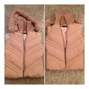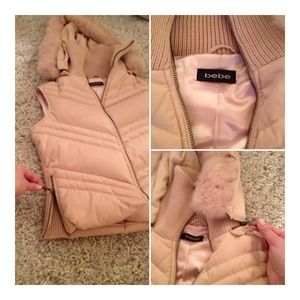 🔻Reduced🔻Beautiful Bebe down winter vest - stylish & chic! Detachable hood is lined with rabbit fur and can be taken off by zipper. There are also zippers on each side of bottom of vest. Vest is 70% down, 30% feathers. Interior is a satin-like material. Subtle & classy pinky peach color - this vest is a definite statement piece! Will fit XS or S.