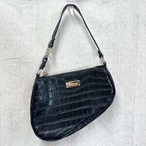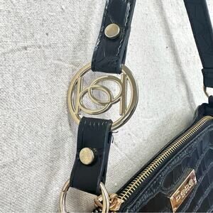 Bebe faux leather black croc Tara Mini Shoulder Hobo Saddle Bag
